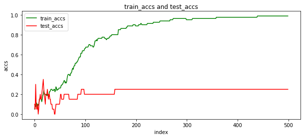 | def train_model(image_data,image_label,weights,bias,lr): loss_value_before=1000000000000000. loss_value=10000000000000. train_accs = [] test_accs = [] for epoch in range(0,500): loss_value_before=loss_value loss_value=0 for i in range(0,80): y = model(image_data[i],weights,bias) gt = image_label[i] loss = torch.sum((y[0,gt:gt+1]-gt).mul(y[0,gt:gt+1]-gt)) loss_value += loss.data.item() loss.backward() weights.data.sub_(weights.grad.data*lr) weights.grad.data.zero_() bias.data.sub_(bias.grad.data*lr) bias.grad.data.zero_()