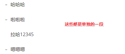 (4)可以采用<br/>或<br/>或按下Shift+Enter键的方式另起一行,这就所有的排序就在一段内了,如下: