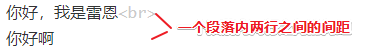 (2)其次,如果要只换行,而不另起一个段落,则需要使用<br/>或<br/>或按下Shift+Enter键,这时候不会另起一段,两行仍然在一个段落里面,此时间距是比较小的,如下所示: