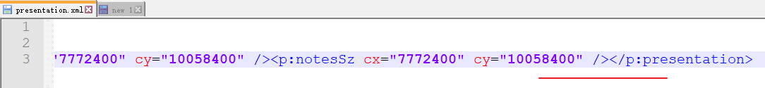 3、删除里面``cy=“10058400” /></p:presentation>`之间的内容,如下图: