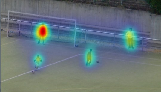 (2)视觉注意机制(Visual Attention Mechanism,VA),即面对一个场景时,人类自动地对感兴趣区域进行处理而选择性地忽略不感兴趣区域,这些人们感兴趣区域被称之为显著性区域。如下图所示,当看到这幅图像时,图中的四个人最能引起人的注意,而其它区域(如地面)就不会引起人们注意。