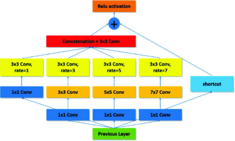 当360°全景图通过ERP投影到一个平面上时,图像上不同尺度的上下文信息是不同的。如图 4 所示,360°全景图比传统的二维图像尺寸大得多,可以捕捉到更多的场景信息,在此基础上,设计了多尺度的上下文模块,有效地提取不同尺度的上下文特征。