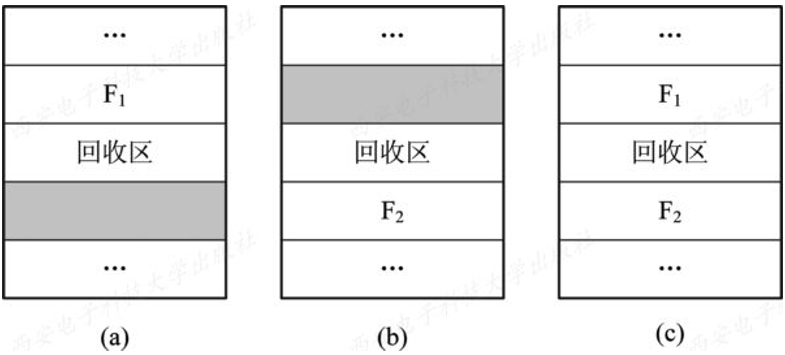 系统在对用户所释放的存储空间进行回收时,也采取类似于内存回收的方法,即要考虑回收区是否与空闲表中插入点的前区和后区相邻接,对相邻接者应予以合并。