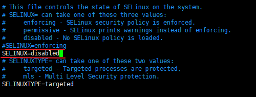 在命令行输入 vim /etc/selinux/config 编辑selinux的配置文件:
