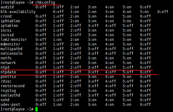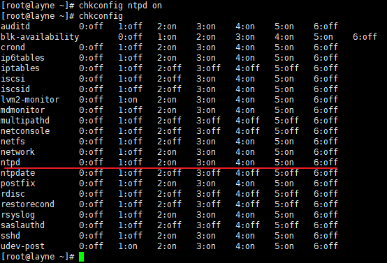 输入chkconfig ntpd on,再次通过chkconfig查看: