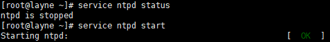 输入 service ntpd status查看ntpd的服务状态,如果显示stopped表示没有启动,此时输入service ntpd start启动服务,过几分钟(5分组左右)就通过网络自动同步到当前时间了。