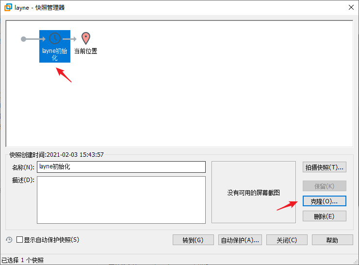 (2)选择一个虚拟机的快照,点击“克隆”。