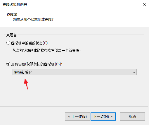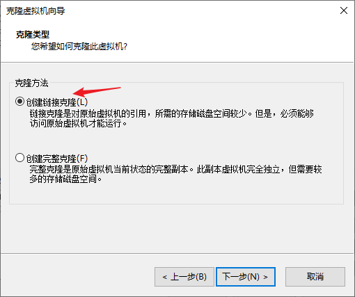 这里为了速度和存储空间,我们选择链接克隆的方式。步骤如下: