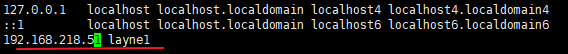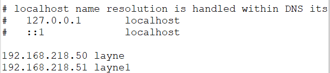 输入vim /etc/hosts编辑CentOS的hosts文件,将192.168.218.50改为192.168.218.51,将layne改为layne1