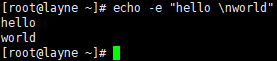 -e表示解释逃逸字符,如输入echo -e "hello \nworld"