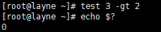 test 3 -gt 2测试3大于2echo $?返回上一条命令执行的结果(linux中0表示正确,1表示错误)