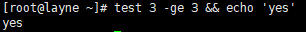 test 3 -ge 3 && echo 'yes'表示3大于等于3成立,然后执行逻辑与,输出yes