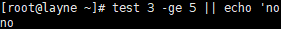 test 3 -ge 5 || echo 'no'表示3大于等于2不成立,然后执行逻辑或,输出no