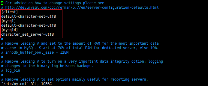 - 修改/etc/my.cnf文件,设置数据库的编码方式