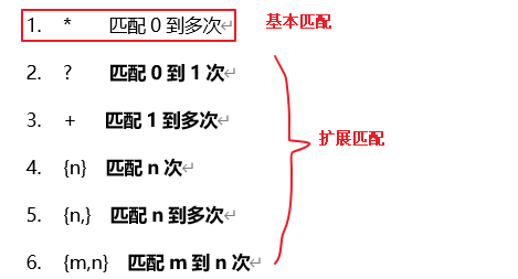 *匹配0到多次?匹配0到1次+匹配1到多次{n}匹配n次{n,}匹配n到多次{m,n}匹配m到n次