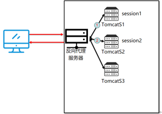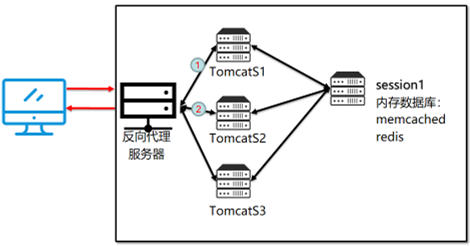 - nginx1作为反向代理服务器,负责session共享、负载均衡、反向代理,区分动态请求和静态请求并转发给不同的服务器