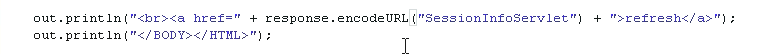 第二个作用:URL后面加入sessionID,当不支持cookie的时候,可以使用encodeURL()方法,encodeUTL()后面跟上sessionID,这样的话,在禁用cookie的浏览器中同时也可以使用session了。但是需要自己编程,只要链接支持,想用session就必须加上encodeURL()。