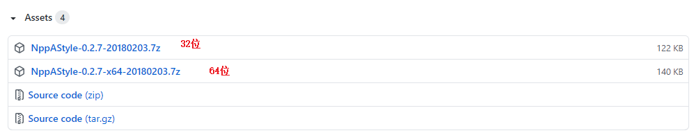 1、进入https://github.com/ywx/NppAStyle/releases,找到Assets,下载与自己安装Notepad++位数相等的插件压缩包。