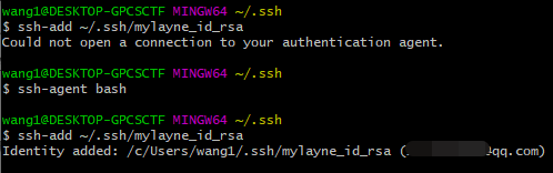 如果报错:Could not open a connection to your authentication agent,即无法连接到ssh agent