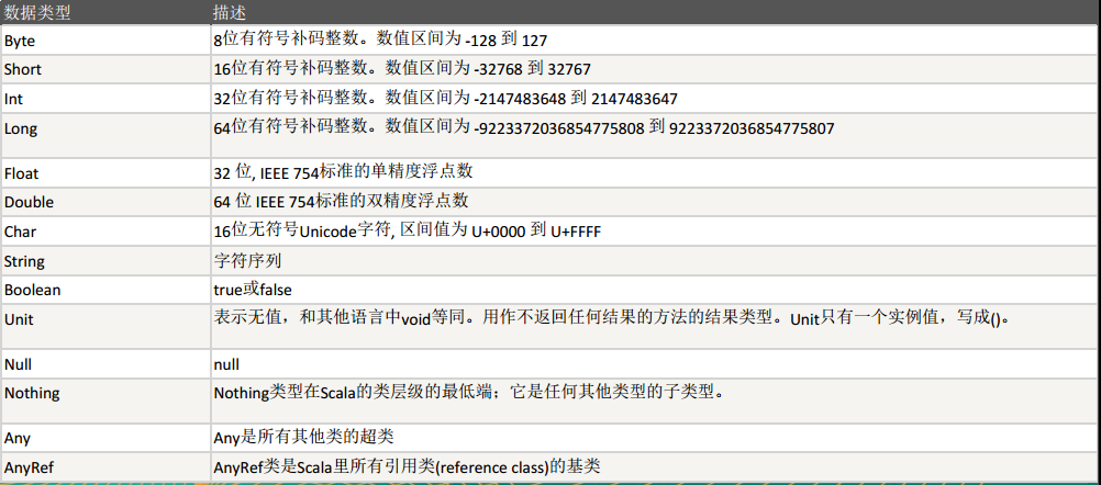 1)Scala各类型数据有固定的表数范围和字段长度,不受具体OS的影响,以保证Scala程序的可移植性。