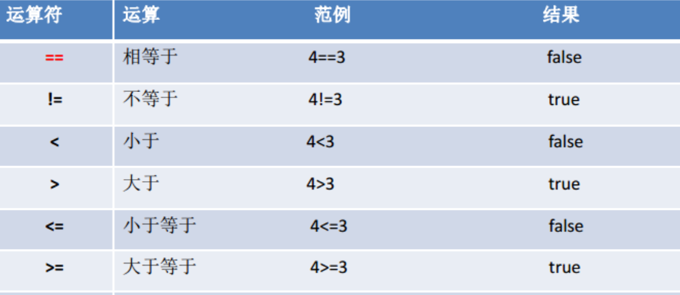 关系运算符的结果都是boolean型,也就是要么是true,要么是false