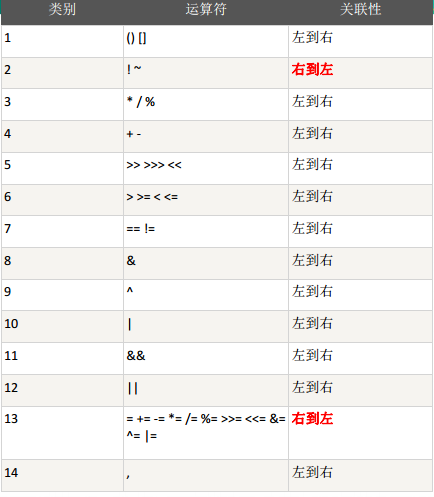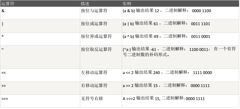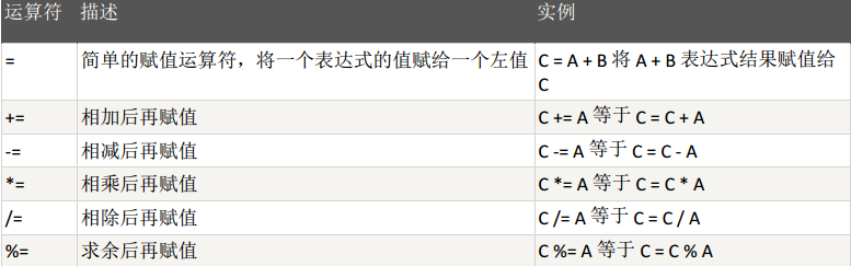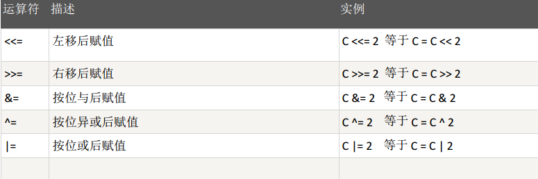 这部分的赋值运算涉及到二进制相关知识,其运行的规则和Java一样。