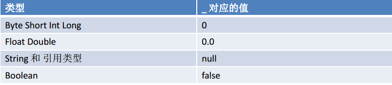 如果在定义属性时,如果用var修饰,则可暂时不赋值,也可以使用符号_下划线),让系统分配默认值。val类型的成员变量,必须要自己手动初始化,不能使用符号_(下划线)