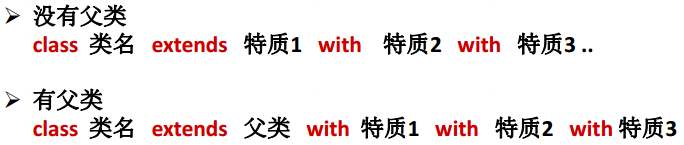 如果混入该特质的类,已经继承了另一个类(A类),则要求A类是特质超类的子类,否则就会出现了多继承现象,发生错误。
