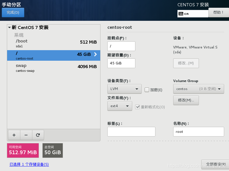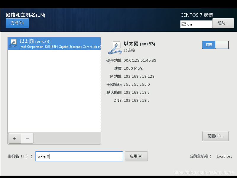安装模板虚拟机,IP 地址 192.168.218.70、主机名称 wxler0、内存 1G、硬盘 50G