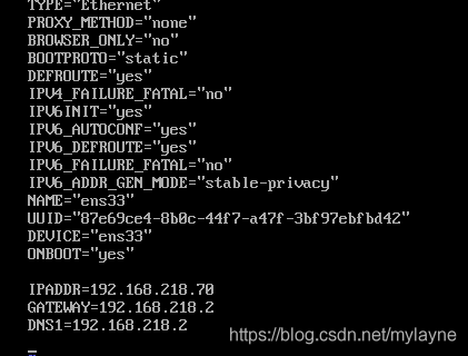 1 | vim /etc/sysconfig/network-scripts/ifcfg-ens33 |