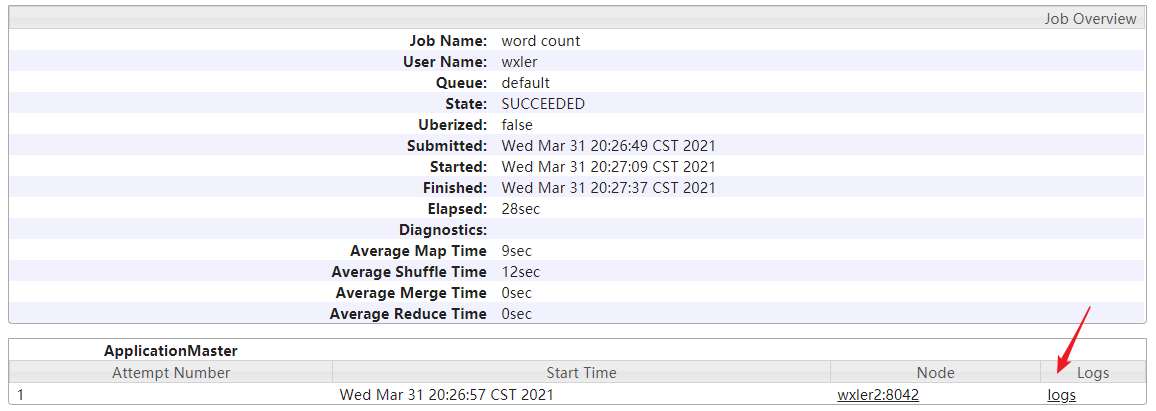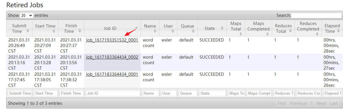 1 | [wxler@wxler1 hadoop-3.1.3]$ hadoop jar share/hadoop/mapreduce/hadoop-mapreduce-examples-3.1.3.jar wordcount wcinput wcoutput |