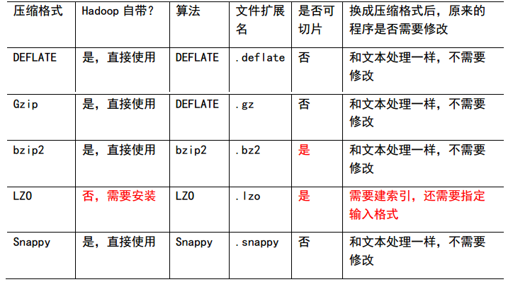 (1)给大家提供的 Hadoop 源码支持的压缩格式有:BZip2Codec、DefaultCodec