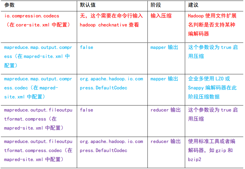 (2)要在 Hadoop 中启用压缩,可以配置如下参数
